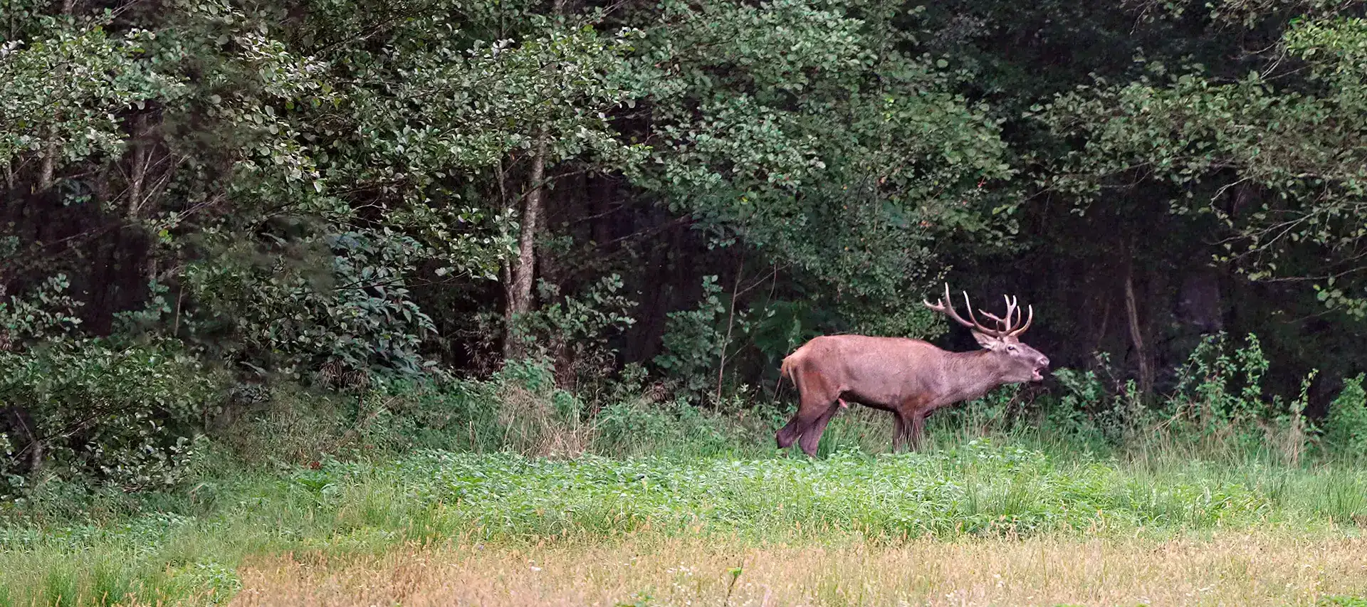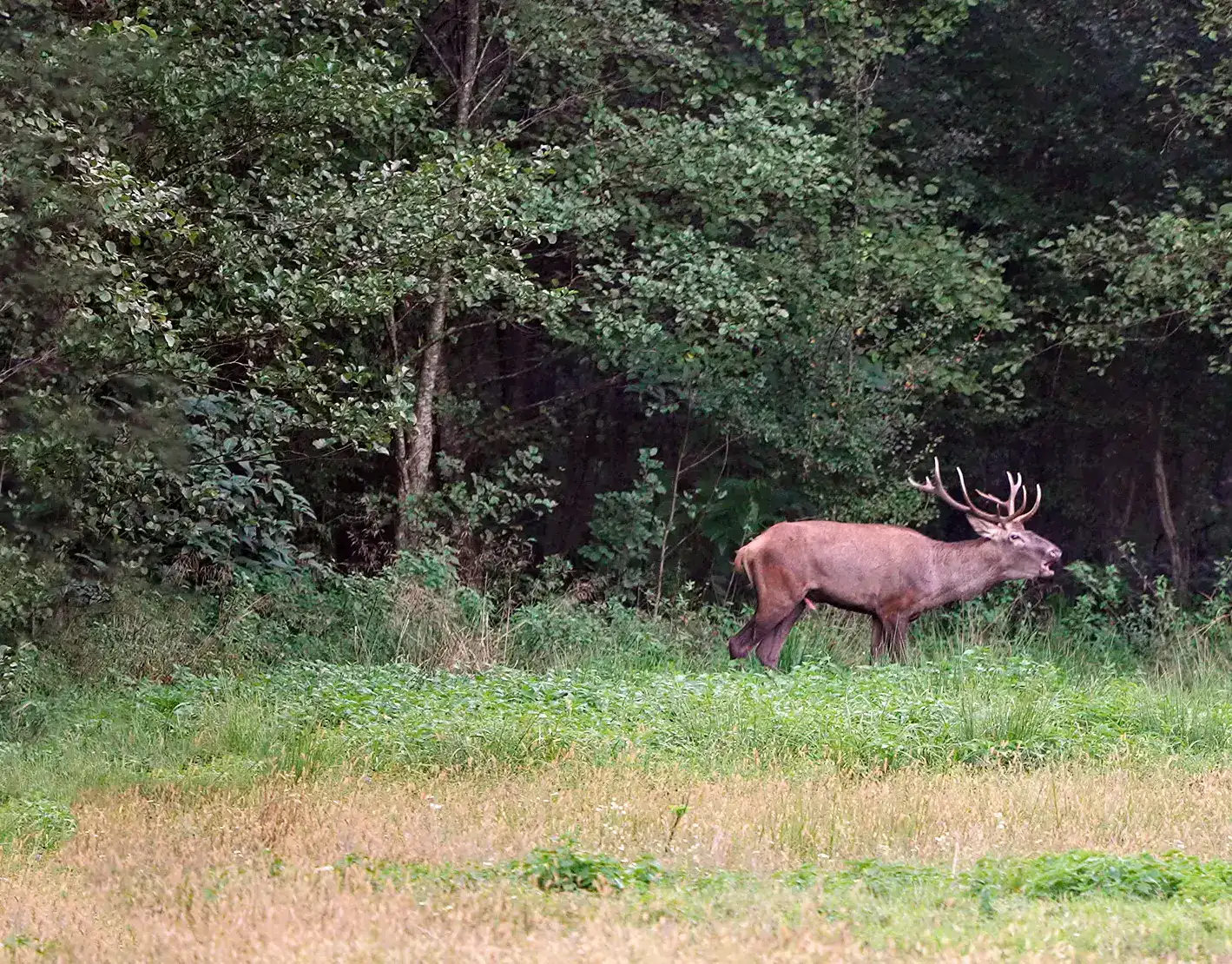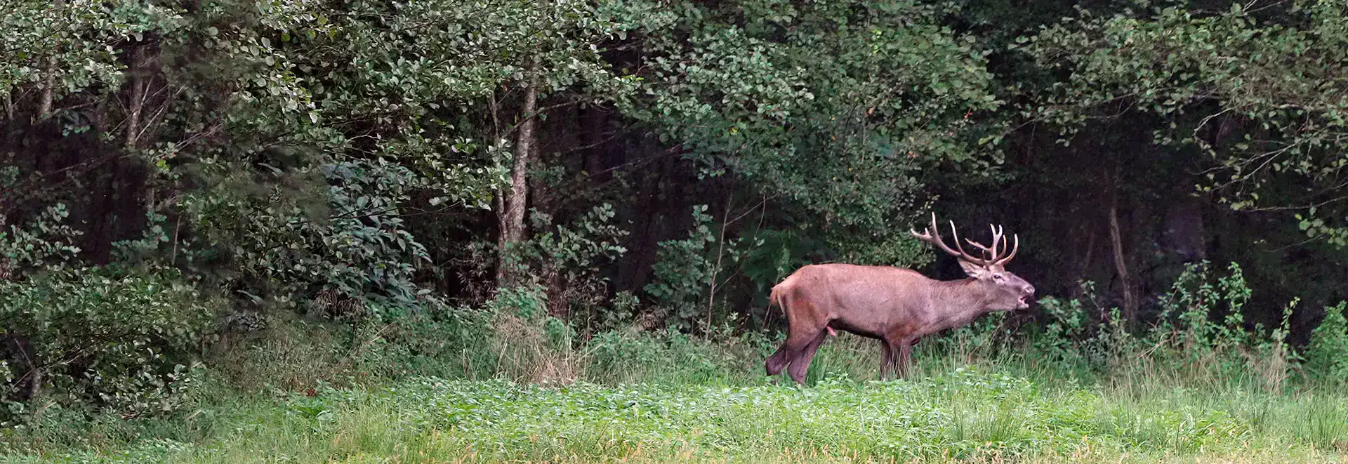 Strukturierte Rotwildreviere mit planbaren Chancen. Je nach Gebiet Fokus auf Hirsch, Kahlwild oder Kombination – mit vorher geklärten Regeln zu Altersklassen und Abschuss.
